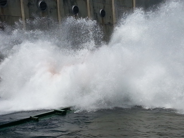 落下後にこの水しぶき。
