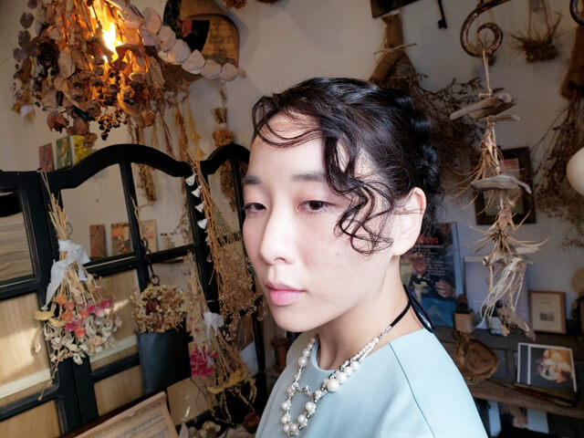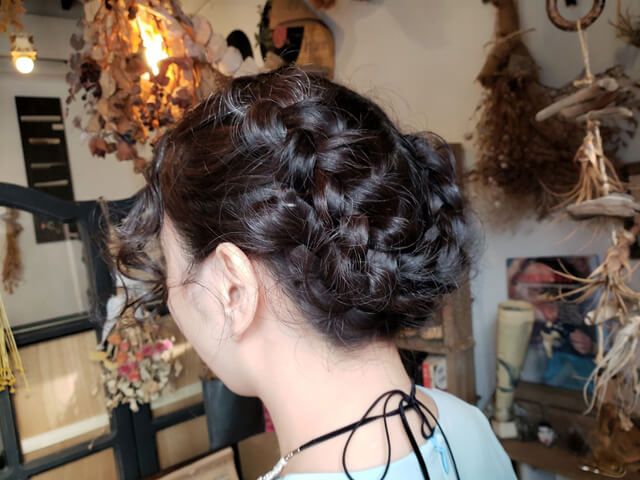 前髪ウェーブで色っぽく、編み込みで大人可愛いさを表現。