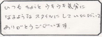 ご来店されたお客様の声をご紹介。率直な感想やリアルな評価をご覧いただき、 画像だけでは伝わらないお店の雰囲気がお伝えできればと思います。
