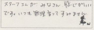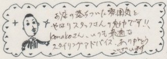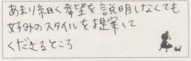 ご来店されたお客様の声をご紹介。率直な感想やリアルな評価をご覧いただき、 画像だけでは伝わらないお店の雰囲気がお伝えできればと思います。